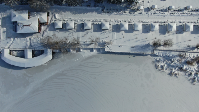 Kent merkezinden 41 km uzaklıkta bulunan Hafik Gölü, 2 kilometrelik mesafeden dronlar aracılığıyla havadan görüntülendi. Gölün yüzeyi tamamen donmuştu.